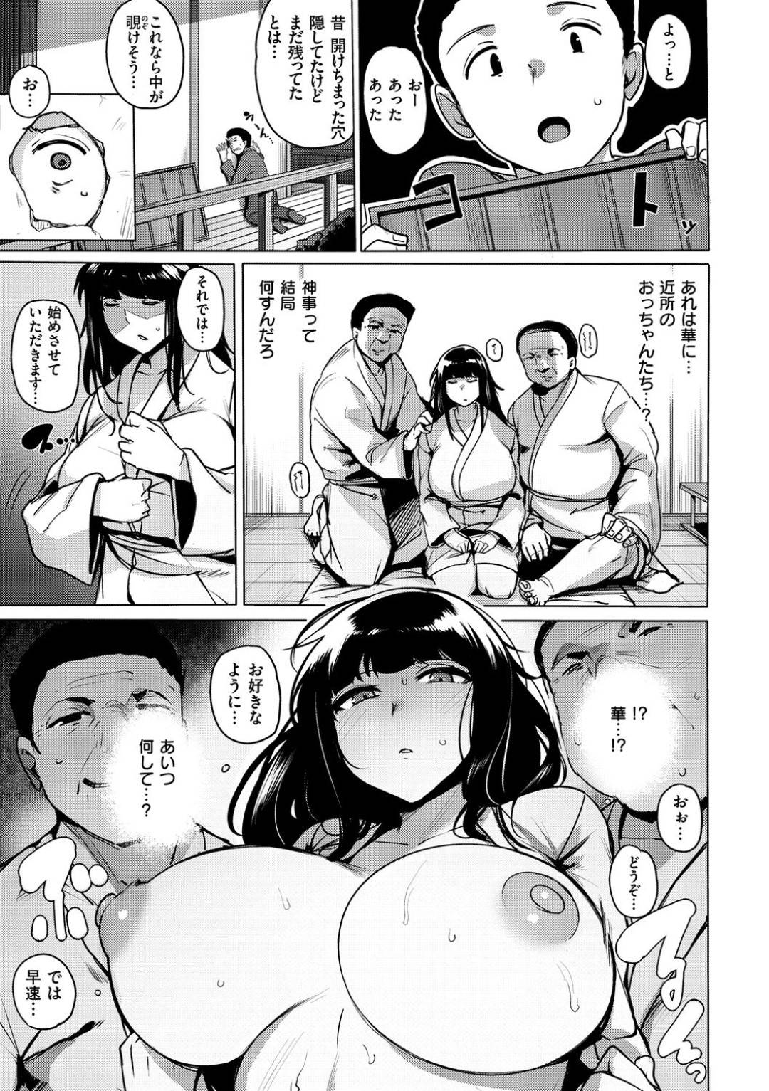 神事と称して巫女が生贄になり複数の男達から肉便器にされる淫らの郷!この呪われた村から二人の娘だけは守ろうとする母親が、都会の高校に進学させる!黒髪ロングの姉・緋景と鳥をこよなく愛する妹・陽向!学校では誰も寄せ付けない美人姉妹の笑顔を陰ながら見つめる生物部の大城!ある日、屋上で大泣きする陽向の姿を目撃した大城。気が付けば彼女の元に駆け寄っていた!可愛がっていた鳥が怪我をして抱きしめながら泣いている陽向。大城が治療してあげ、毎日面倒を見るようになり、陽向との距離が一気に縮み、恋人同士に!そんなある日、田舎に帰らなくてはならなくなった美人姉妹!離れ離れになる前に緋景が立会人となり、恋人同士の濃厚な初体験を見守りながらオナニーするのだった!