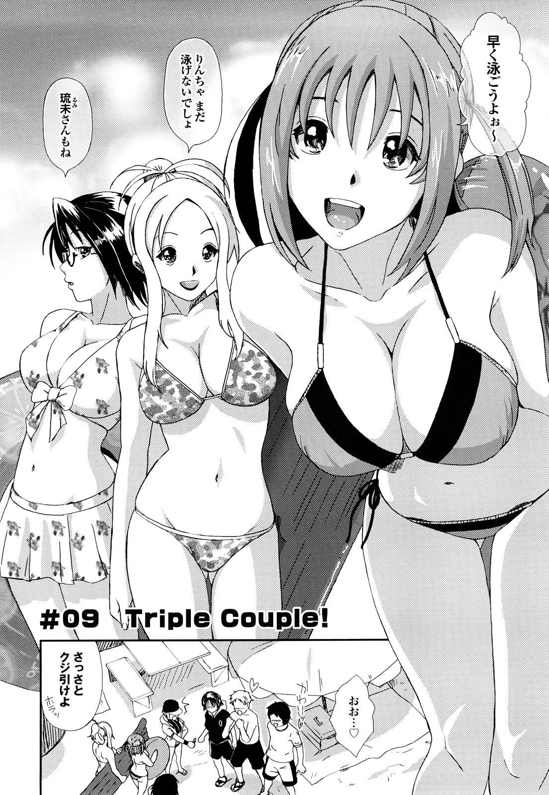 彼氏彼女持ちの男女6人で海に行き水泳教室!くじ引きで3組のペアを決める事に!巨乳美少女JK・凛の彼氏二人が友達のJK二人とペアになり、凛は後輩の美少年とペアになる!そして別行動が始まる!予想通りの展開で、ビッチJKが凜の彼氏を誘惑して岩場に隠れて逆寝取りセックスを開始。それを、偶々見つけたもう一組も誘発されて青姦SEX!そして、彼氏の浮気現場を覗き見してる凛と美少年。発情した凜が露出オナニーを始めるのだった!